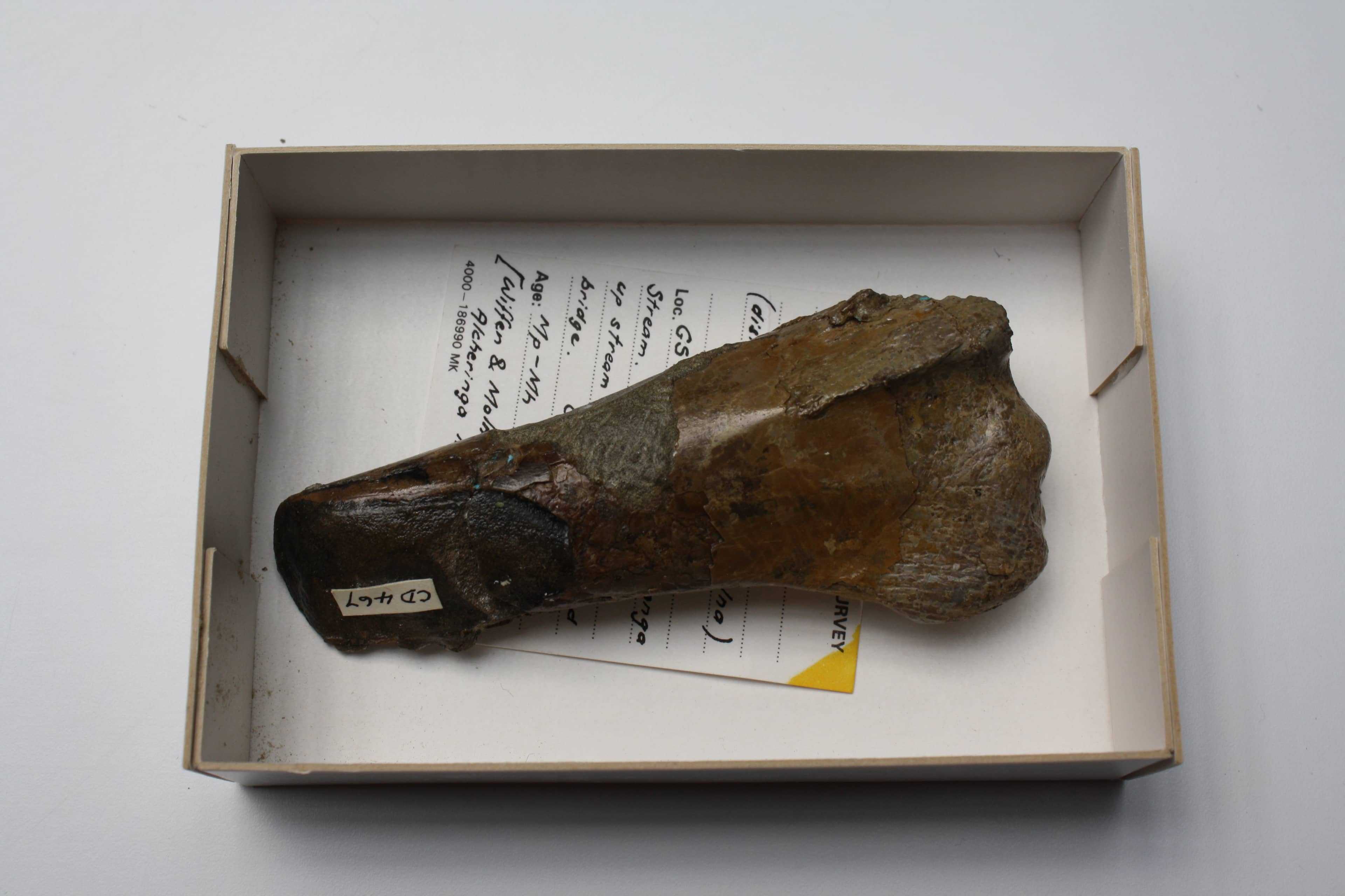 Charles Fleming’s possible pterosaur bone found in 1955 has yet to be formally identified and described – until such a time, the Crabtree specimen will remain as the first dinosaur fossil found in Aotearoa.