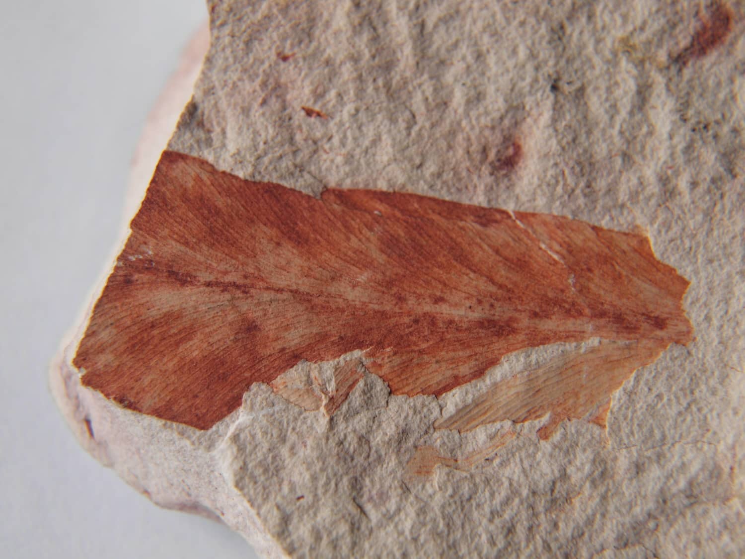 Fossil leaves of Glossopteris found in Southland. This plant is used to identify lands once part of Gondwana.