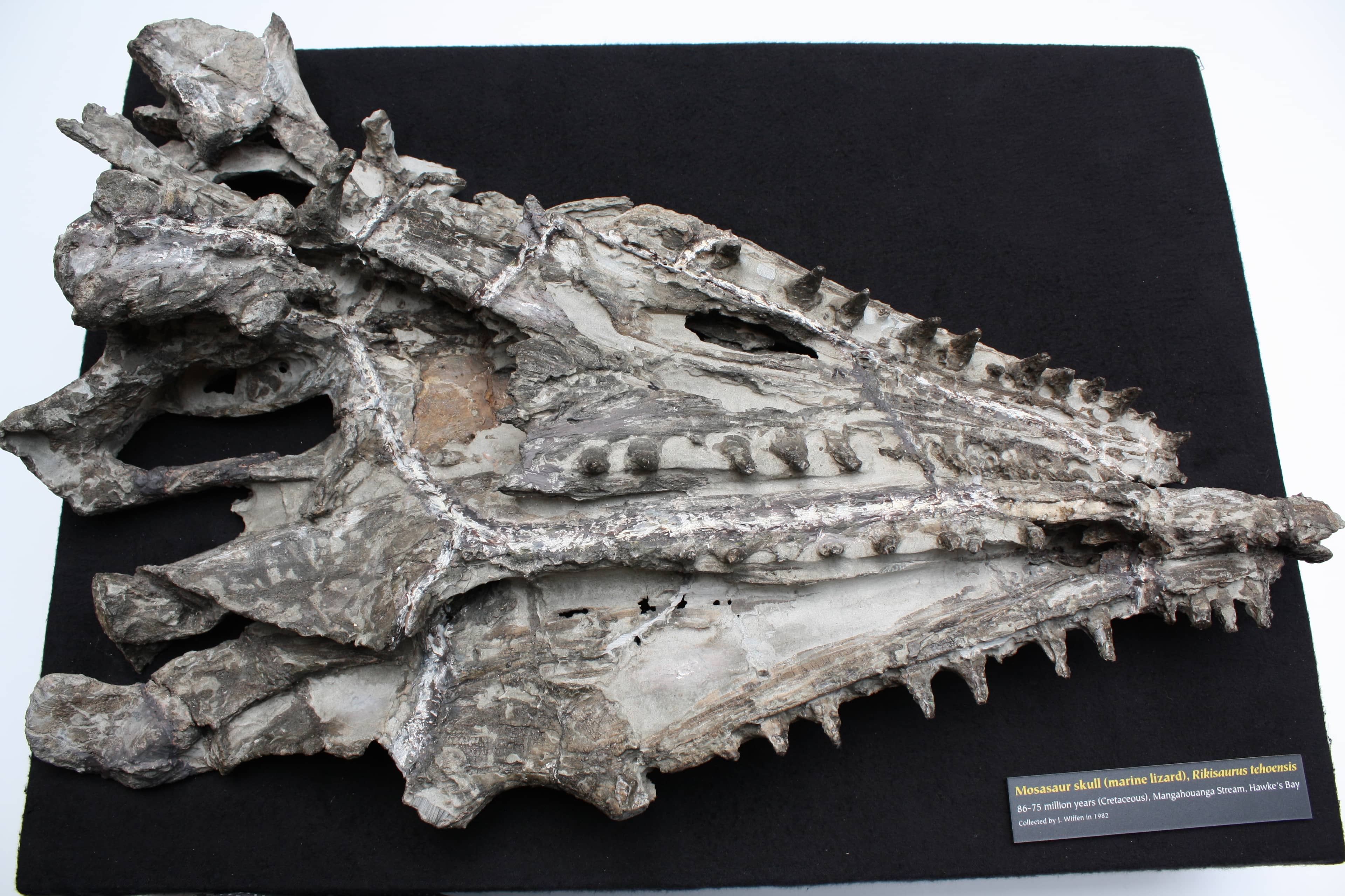 Joan names two new species of mosasaur found at Mangahouanga – Rikisaurus tehoensis and Mosasaurus flemingi.
