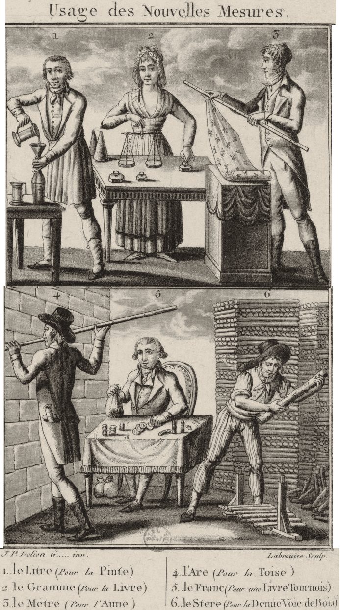 Image: Woodcut illustrating the new decimal units. Public domain.