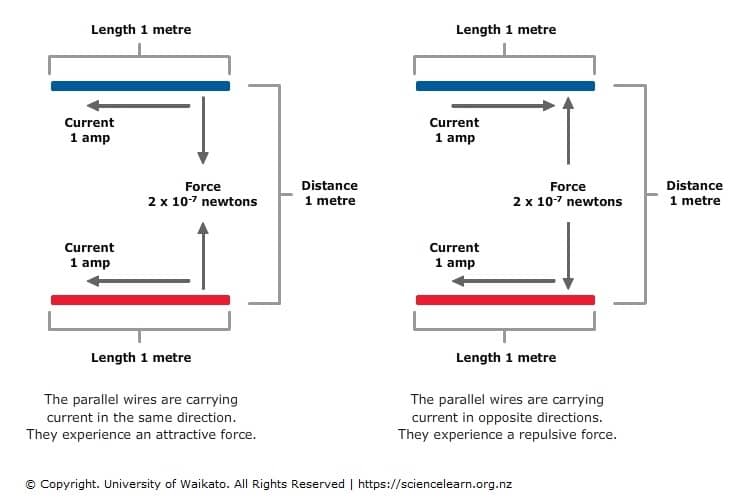 The ampere – measurement of electric current – is redefined. The new definition is related to the force per unit length between two very long parallel wires. The definition resembles the original experiment carried out by André-Marie Ampère, the scientist for whom the unit is named.