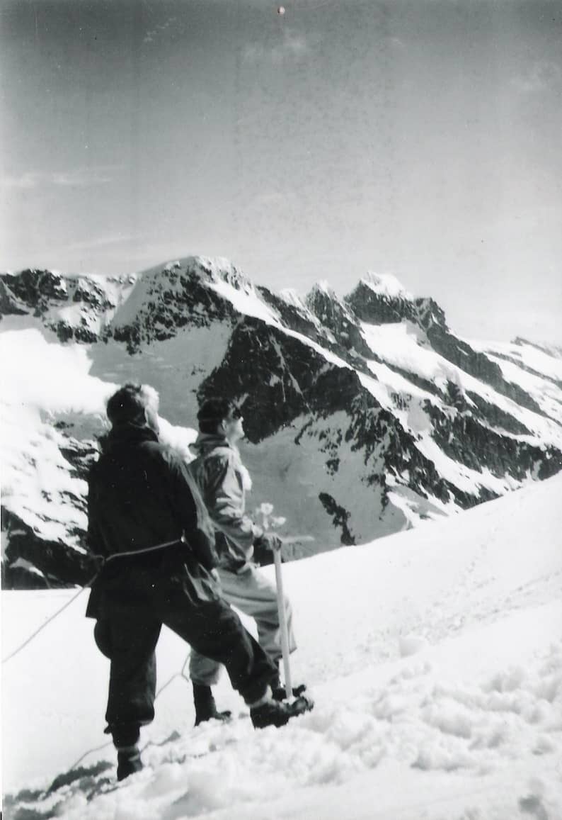 Image: Rusty Rawlings and Frank Evison (on right) on Mount Duff 1951. Courtesy Harry Evison
